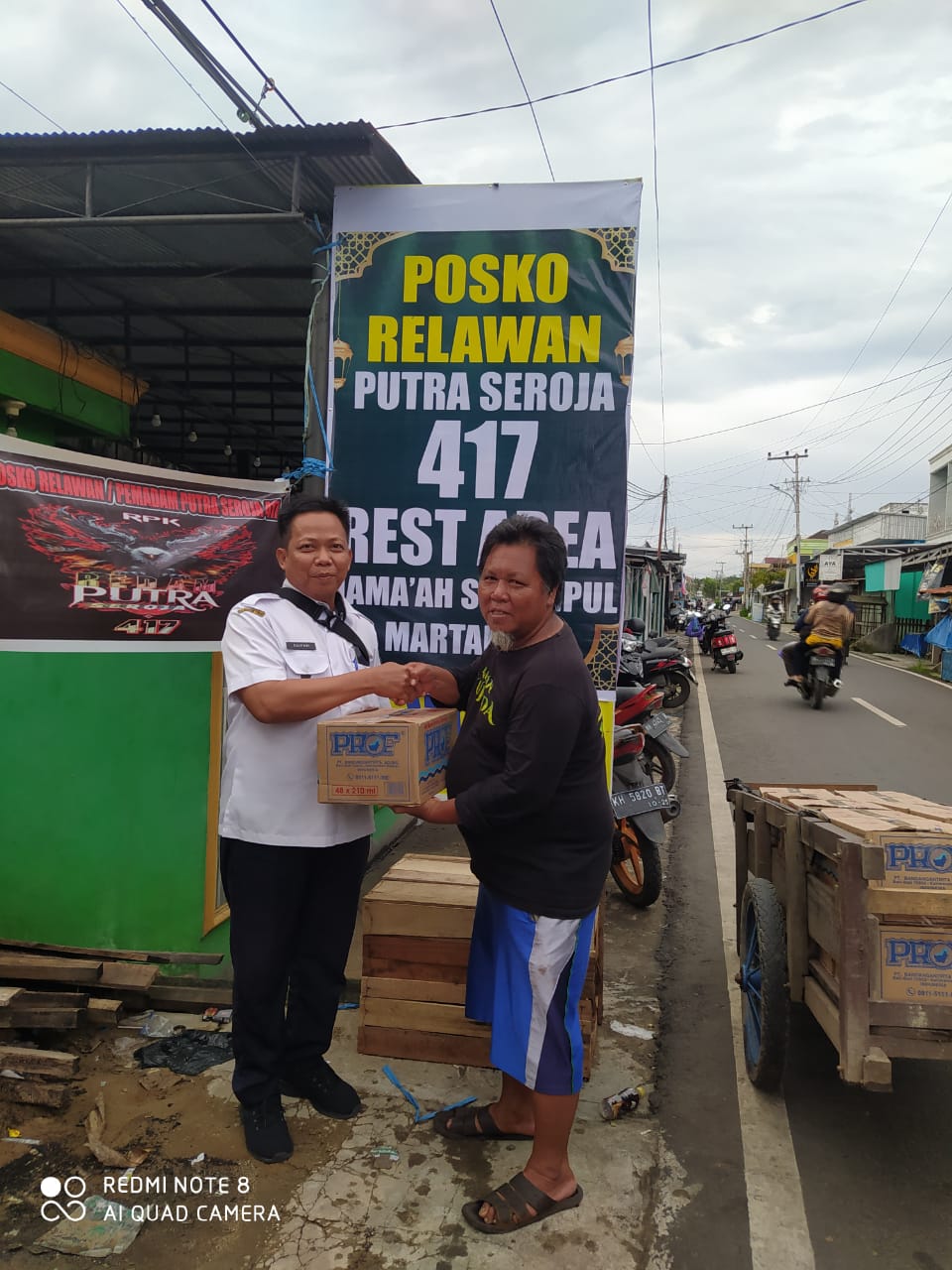 Lurah Selat Tengah Saifuni.Kunjungi dan berikan bantuan Posko Relawan 417 Rest Area Haul Guru Sekumpul Martapura di Jalan Seroja.
